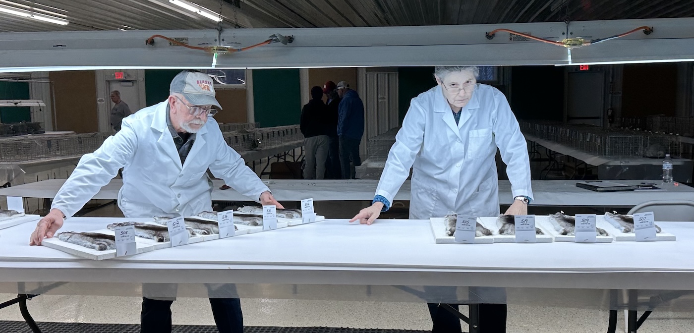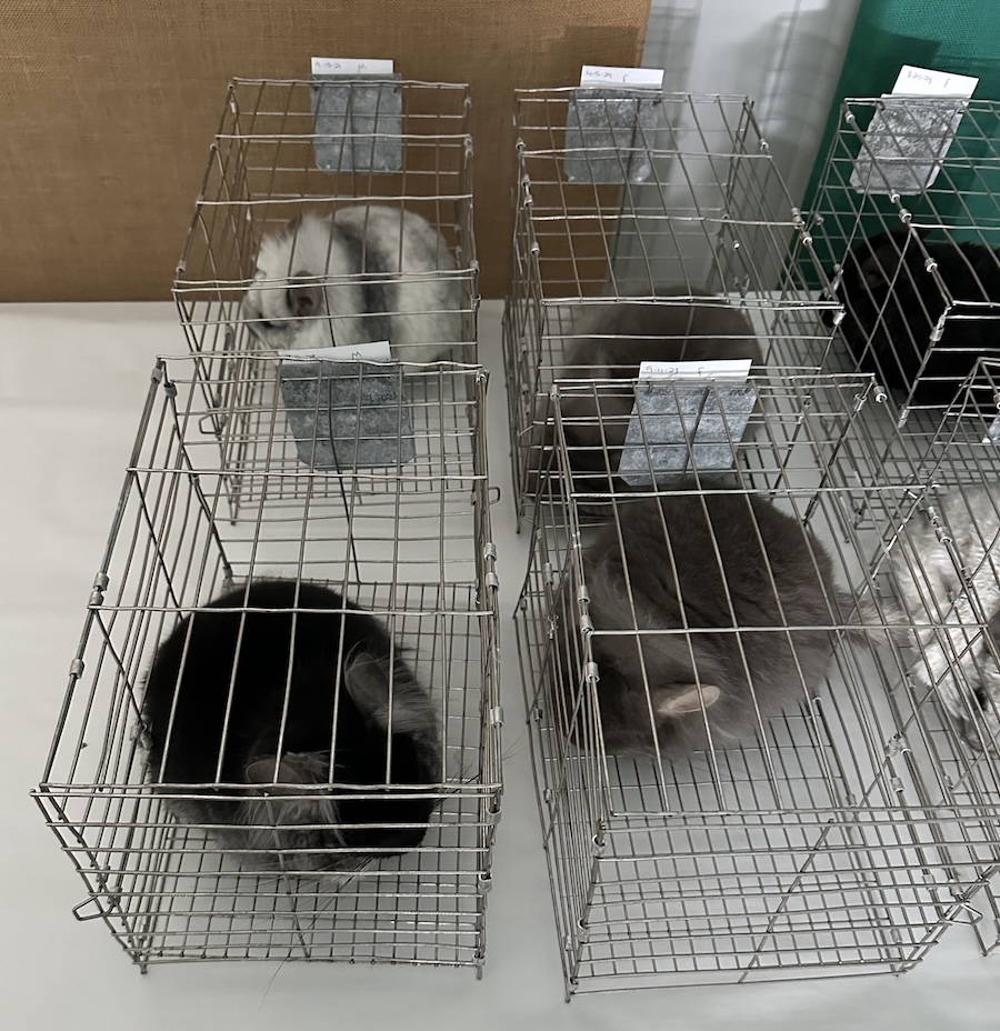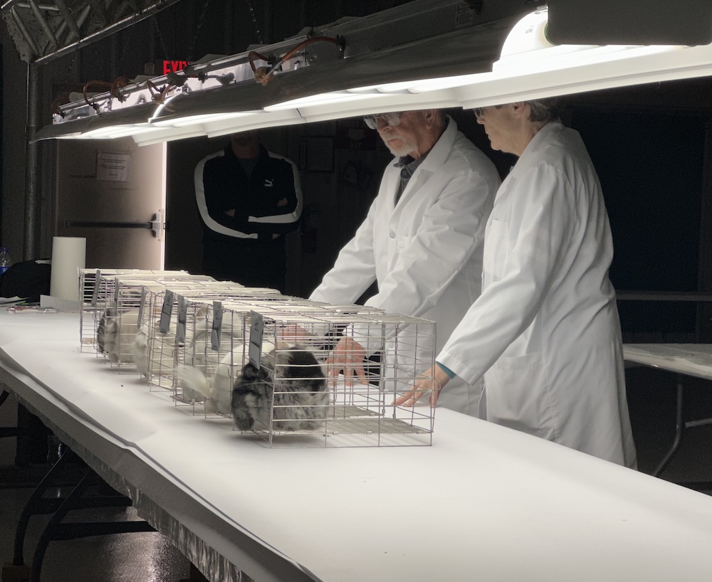 This year was extra interesting, a very old retired breeder brought pelts that had been done many years before for judging. Pelting in the US stopped about 5 years ago because one processor passed away of old age and the other retired. The only way to get pelts processed now is to send them in batches of 500 overseas and nobody does that. Too expensive.