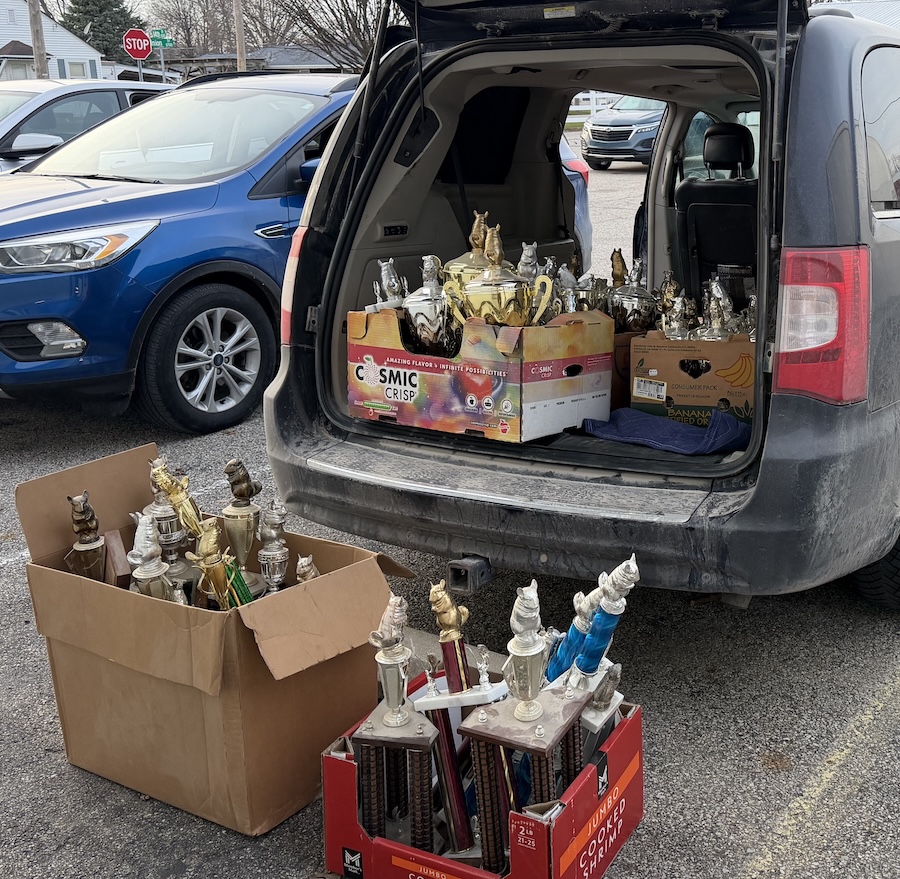 One of the retiring breeders donated all of their trophies back to the club. They were very successful on the show tables while active.
