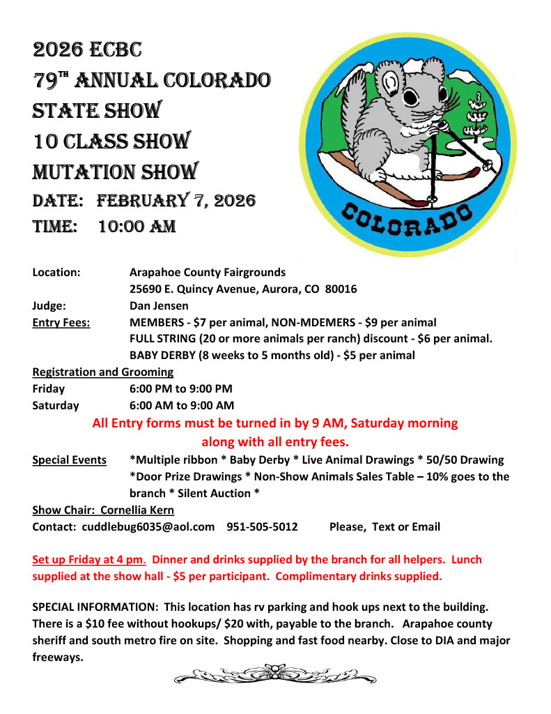 Update 1/29/26 - I might go to the Arapahoe County Fairgrounds show in CO on Feb. 7th 2026. It is open to the public and all are welcome to attend. If you interested in a chinchilla text me, I will know for sure by Feb 4th if the weather will allow travel.
