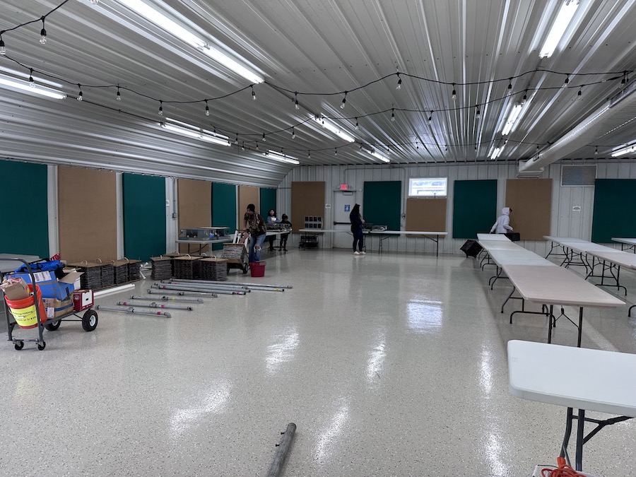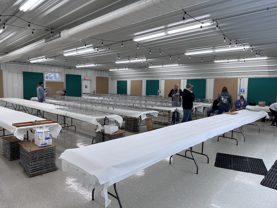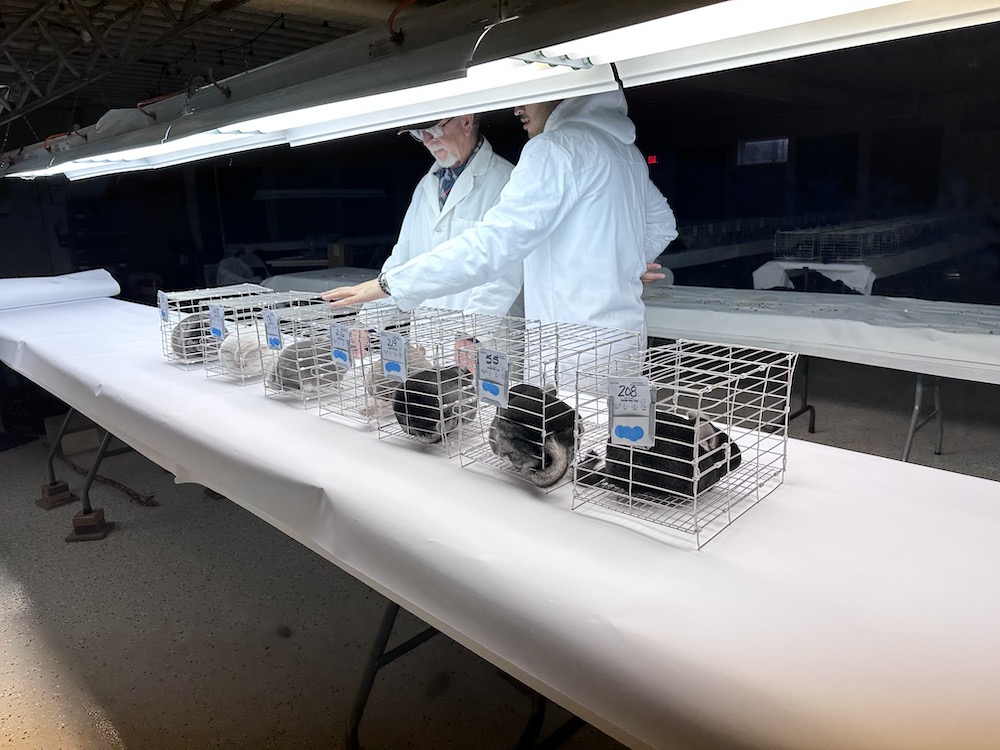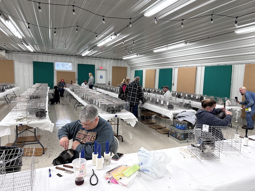 Morning of the show, more chinchillas have arrived overnight and everyone is getting down to business brushing chinchillas and filling out cage cards.