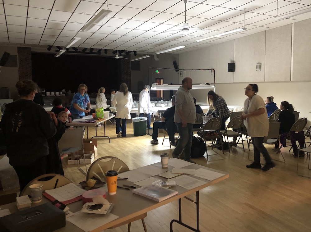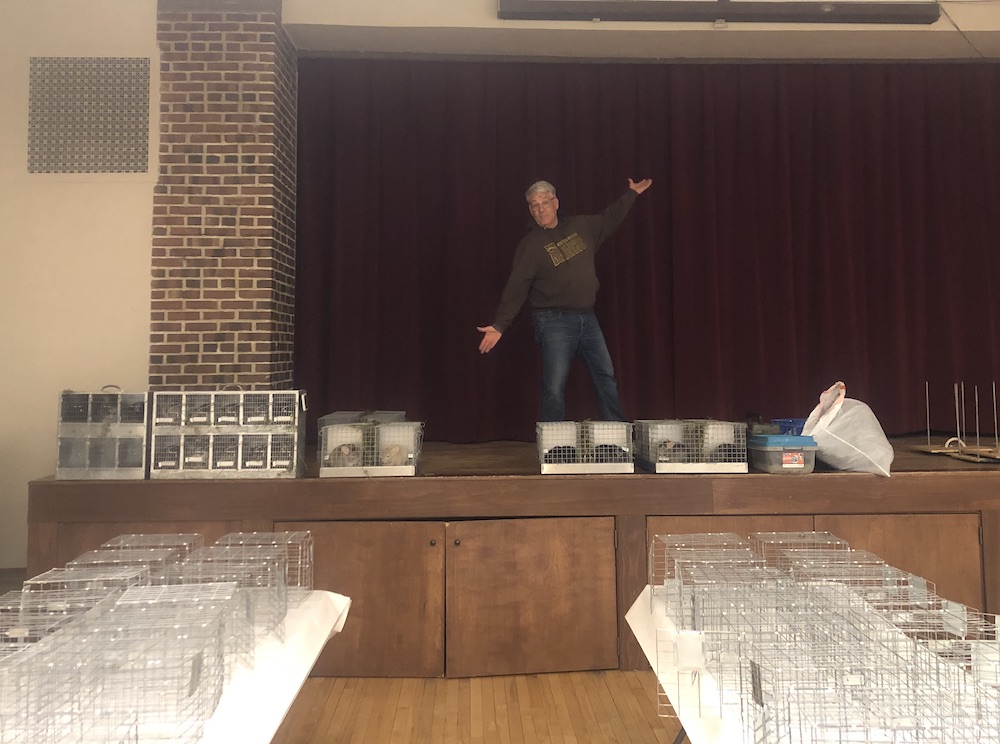 Randy Eddy of Eddy's Chinchillas arriving in style. The show cages are provided by the chapter and set up before the arrival of the chinchillas.