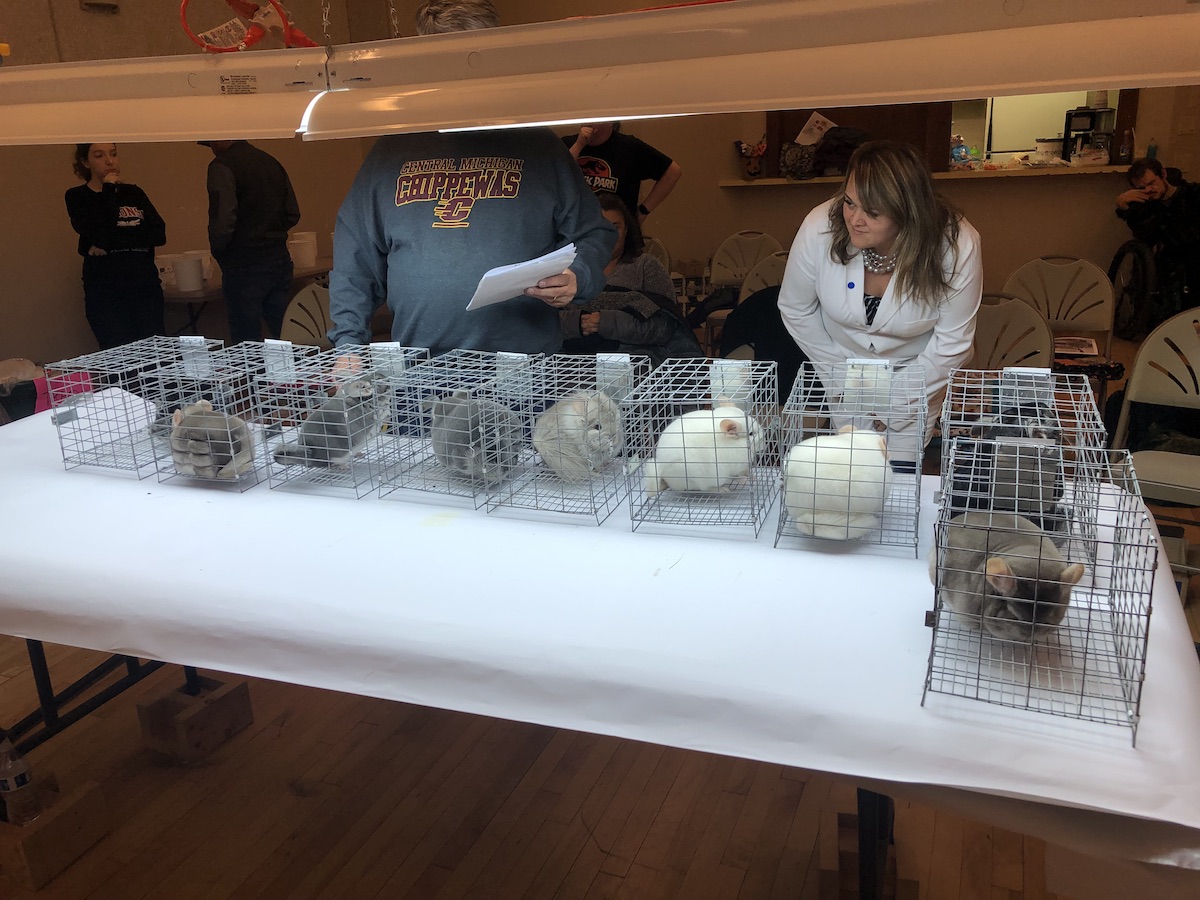 Judges were Maxine Lynch and Narci Kimball (pictured). This is a photo of the champions, I took Champion violet and champion white female with a nice Tan White girl.