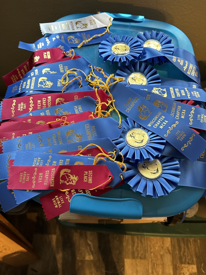Champions, I bred the Black Velvet Angora, Mosaic and Sapphire girls in the center. Very proud of them.